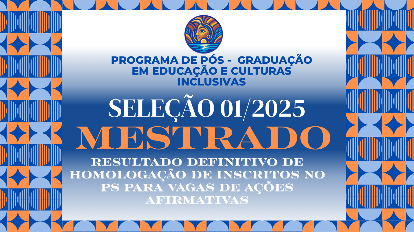 A Comissão de Seleção do Programa de Pós-Graduação em Educação e Culturas Inclusivas (PPGECI) divulga o resultado DEFINITIVO de homologação de inscritos no Processo Seletivo para vagas de Ações Afirmativas (Edital Nº 1/2025).